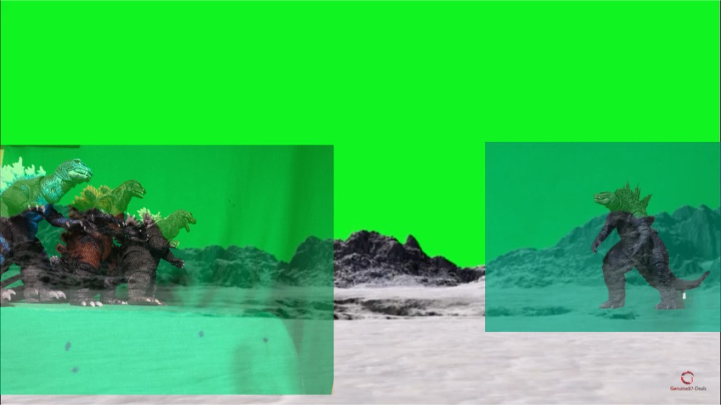 I have all Godzilla’s in there respectful positions. Greenscreening them onto the background will be my next task…